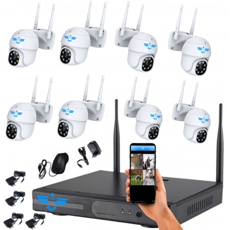 KIT 8 telecamere Audio + NVR 8 Canali, PT 3.0 Mpixel, Visione Notturna, Human Recognition