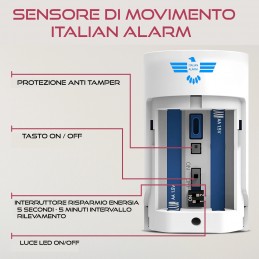 Sirena Wireless Anti Jamming Questa sirena deve essere sempre alimentata, in caso di mancanza di corrente entra in funzione la batteria tampone per circa 12 ore Si può anche evitare di usare l'alimentazione a corrente collegando l'apposito pannello solare 27 x 18 x 4.5 cm circa IP 64 Batteria tampone 3.7 V 5000 mAh alimentazione 12 V 1 A (oppure con...